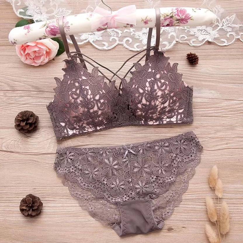 Best Arrival Look Grey Lace & Net Comfortable Lingerie Set For Women