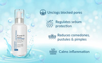 The facial wash is a comprehensive solution for the treatment of acne, blackheads, clogged pores, and increased sebum production. The therapeutic facial wash is formulated effectively to target various types of blemishes like pustules, papules, and clogged pores. Clogged pores cause acne development. Utilising this facewash removes dead skin cells and successfully eliminates excess sebum production that forms acne.