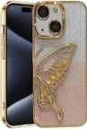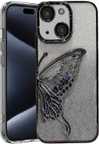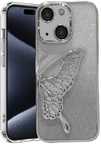 FIXTOTEL Back Cover for Apple iPhone 13, iPhone 13, Glitter Butterfly, Flexible (Silver, Camera Bump Protector, Pack of: 1)