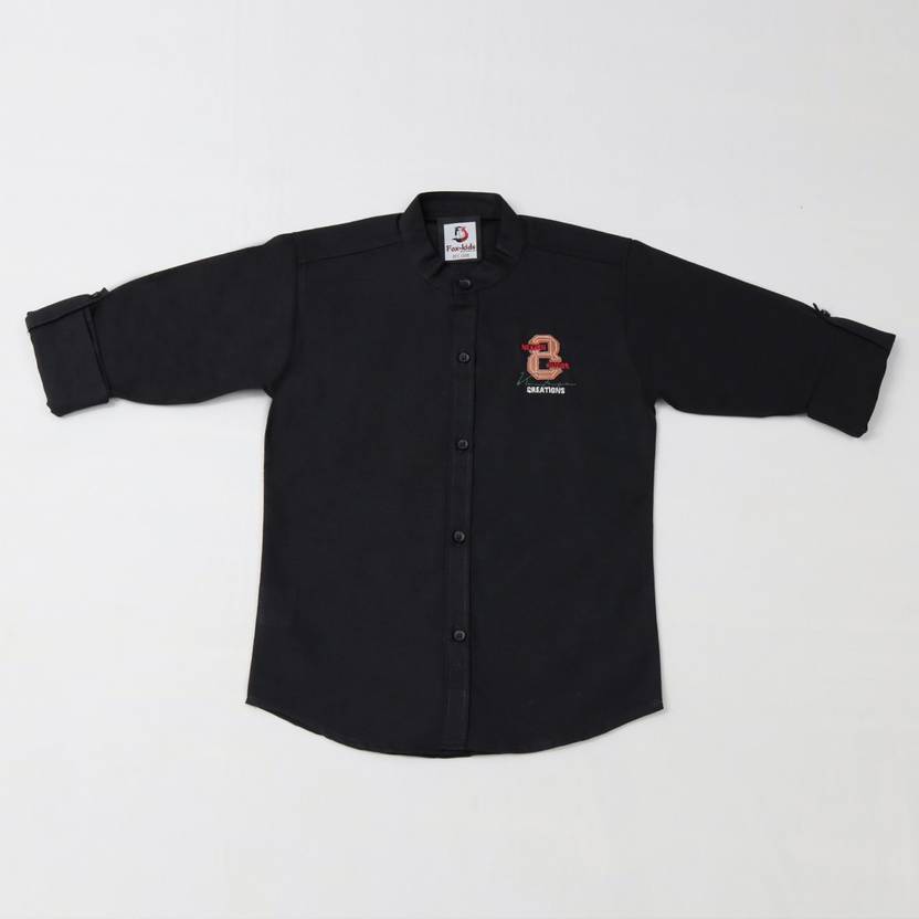 FK Fox Kids Boy's Cotton Full-Sleeve Black Shirt