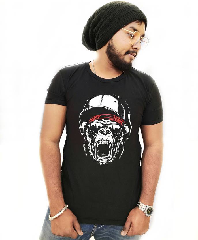 This is a glowing Tshirt which glows in dark because of radium print. This T-shirt has a Cool Gorilla design which glows at dark or if you put bright light on it.