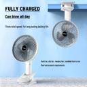 Charging voltage: recommended 5V/2A Material: ABS+PP+electronic components Fan gear: three-speed wind Charging connector: TYPE-C USB charging Rotation angle: 360° up and down, 360° left and right