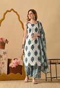 Women Floral Printed Aline Kurta Palazzo With Dupatta Set