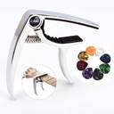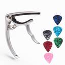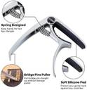 Spring Guitar Capo is for really fast changes on stage. Easily applied and adjusted with one hand and can be conveniently parked on the head stock when not in use. Whether Western guitar or acoustic guitars, the trigger capo refined adjustment means that only the right amount of pressure needs to be applied to clamp the strings.