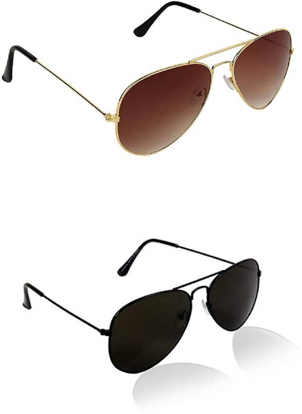 I Flash Gradient, UV Protection Aviator Sunglasses (Free Size) (For Men & Women, Golden, Brown, Black)