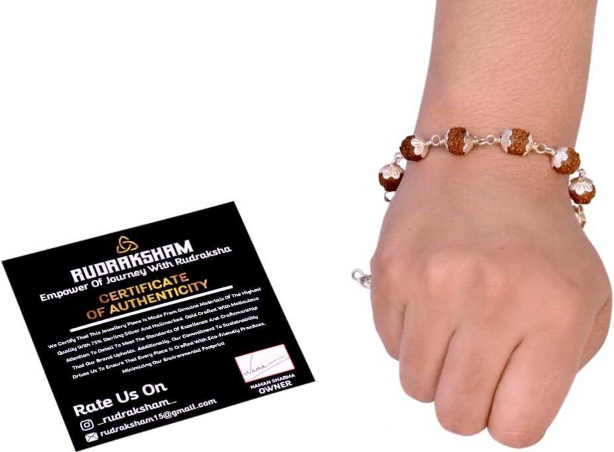 925 Silver Rudraksha Bracelet | Handmade Panchmukhi Beads Spiritual Jewelry