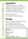 Propylene Glycol (E 1520 ), Natural – Nature Identical and Artificial Flavouring substances, Emulsifying Agent (E 420), Permitted Antioxidant (E 320)