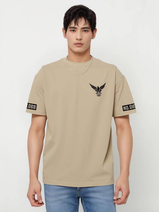 FLECT Printed Men Round Neck Beige T-Shirt