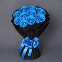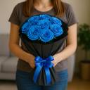 Fleur Buddy Elegant Artificial Rose Bouquet – Black Wrap | Ideal Gift for All Occasions Blue Rose Artificial Flower (30 cm, Pack of 8, Flower Bunch)