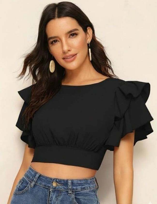 Regular Ruffle Sleeves Crop Top