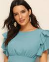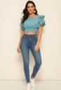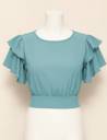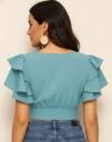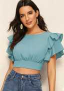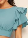 Cropped, Ruffles, Statement sleeve, Cool blue