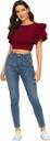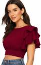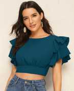 Cropped, Ruffles, Statement sleeve, Cool blue