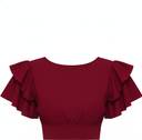 *Sleeves: The main design feature is the flutter sleeves, which are short, loose, and composed of two or more ruffle tiers that drape over the shoulders.