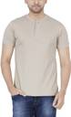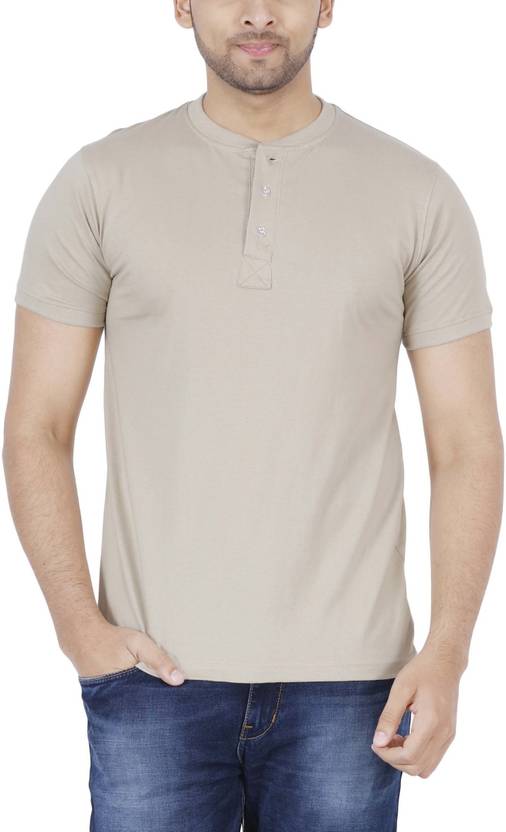 Fleximaa Men Solid Henley Neck Cotton Blend Beige T-Shirt
