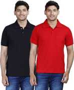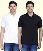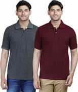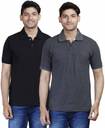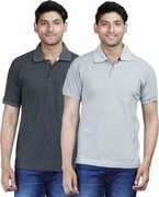 Fleximaa Solid Men Polo Neck Black, Grey T-Shirt
