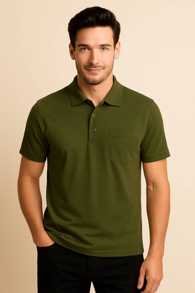 Men Solid Polo Neck Pure Cotton Green T-Shirt