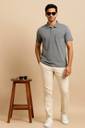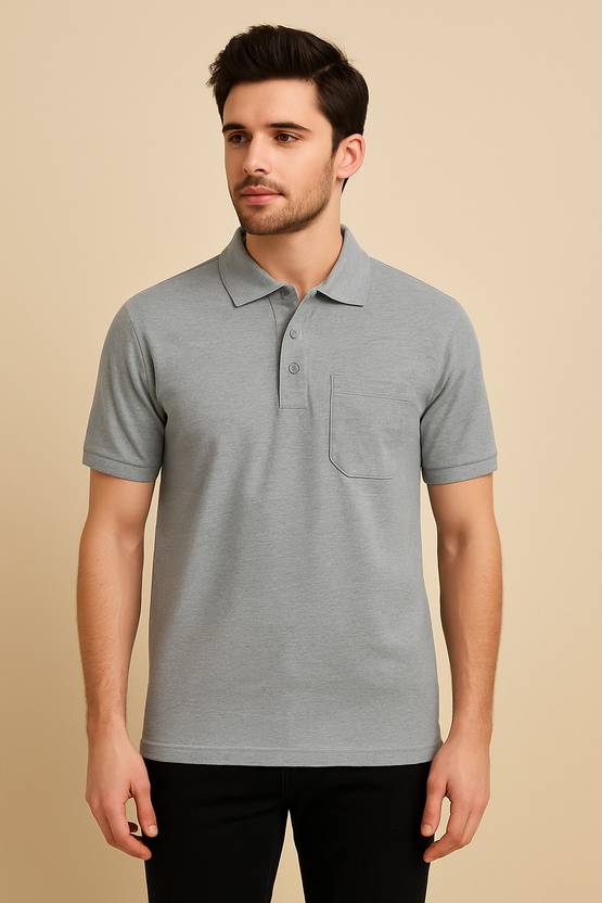 Fleximaa Solid Men Polo Neck Grey T-Shirt