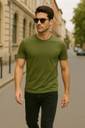 Men Solid Round Neck Pure Cotton Dark Green T-Shirt