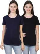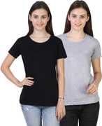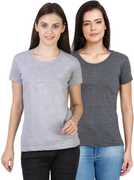 Fleximaa Solid Women Round Neck Grey T-Shirt