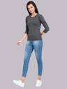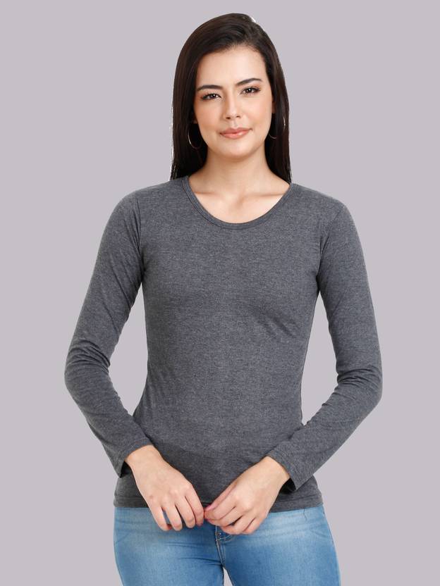 Fleximaa Solid Women Round Neck Grey T-Shirt