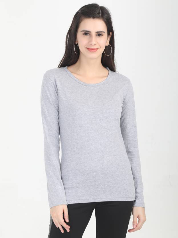 Fleximaa Solid Women Round Neck Grey T-Shirt