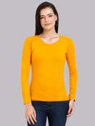 Adorned in a chic solid pattern, this women’s T-shirt can effortlessly elevate your wardrobe. And, this also ensures a timeless aesthetic, allowing you to effortlessly pair it with various bottoms for a myriad of stylish ensembles. Hence, this distinctive design can not only add a touch of sophistication to your look but also provide the benefit of versatile pairing, making it a staple in your closet for any occasion.