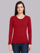 Fleximaa Solid Women Round Neck Maroon T-Shirt