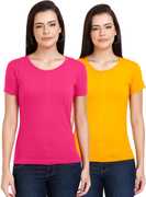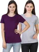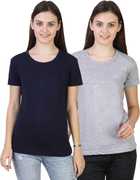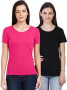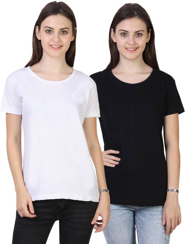 Fleximaa Solid Women Round Neck White, Black T-Shirt