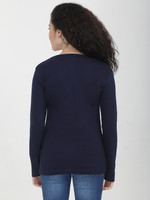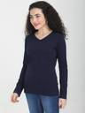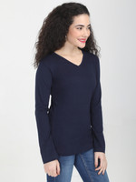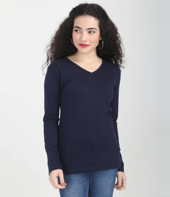 Fleximaa Solid Women V Neck Blue T-Shirt