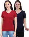 Fleximaa Solid Women V Neck Multicolor T-Shirt