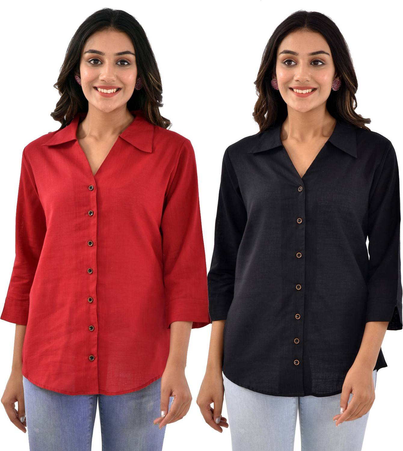 Fleximaa Solid Women V Neck Multicolor T-Shirt