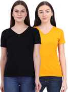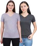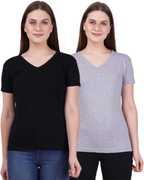 Fleximaa Solid Women V Neck Multicolor T-Shirt