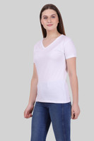 Featuring a solid pattern, this women’s T-shirt can ensure a sophisticated, versatile look for any occasion. And, the seamless integration of the classic design allows you to effortlessly transition from casual outings to semi-formal events, providing you with endless wardrobe possibilities. Thus, you can embody the essence of simplicity with this solid pattern that epitomises both sophistication and ease.