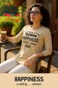 Fleximaa Typography Women Round Neck Beige T-Shirt