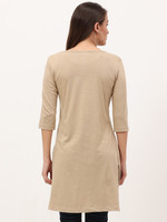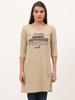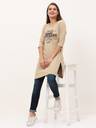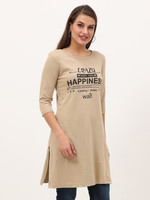 Crafted with a longline design, this T-shirt seamlessly merges fashion with everyday wear. The regular three-quarter sleeves and classic neck design strike an ideal balance between casual and chic, making it a must-have for various occasions. This way, you can elevate your style effortlessly, enjoying a trendy and contemporary vibe on any outing.