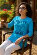 Featuring a vibrant typography printed pattern, this women's T-shirt offers a bold and stylish appearance. So, whether you're heading to a casual outing or a social event, this T-shirt provides a fashionable and eye-catching look, enhancing your personal style and confidence.
