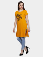 Fleximaa Typography Women Round Neck Yellow T-Shirt