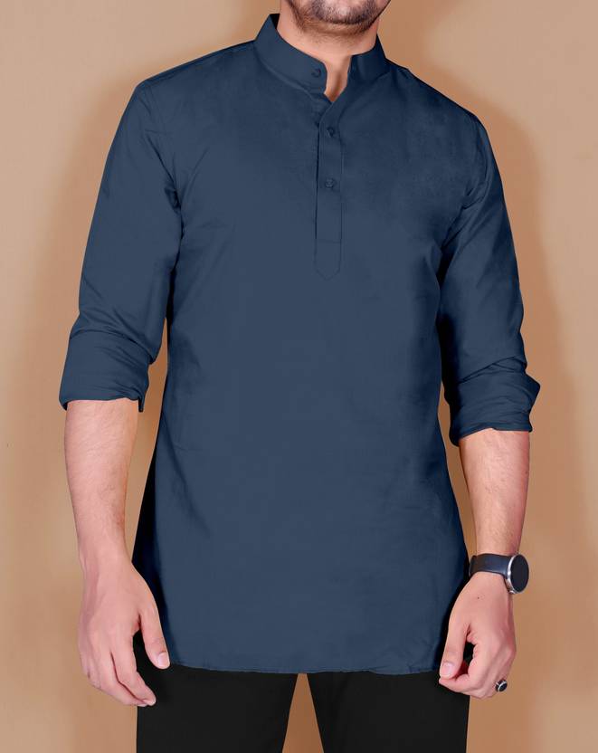Sarahna Men Solid Straight Kurta (Dark Blue)