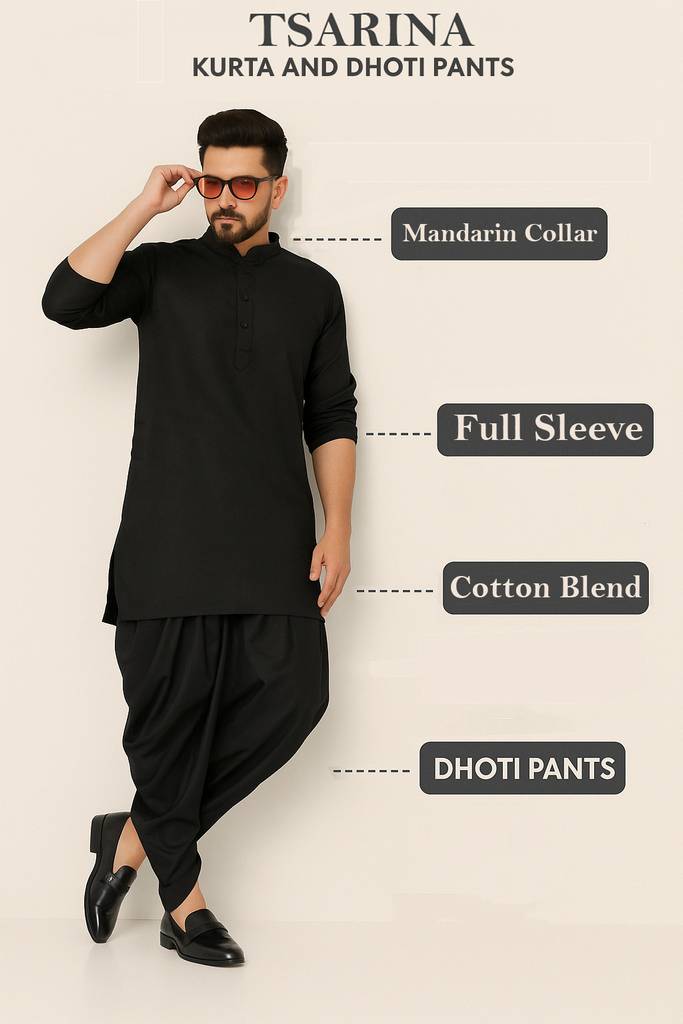 Men Solid Cotton Blend Straight Kurta (Black)