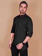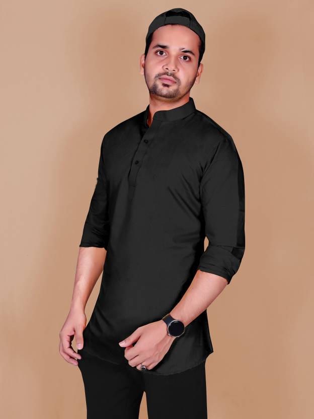 Flicfol Men Solid Straight Kurta (Black)