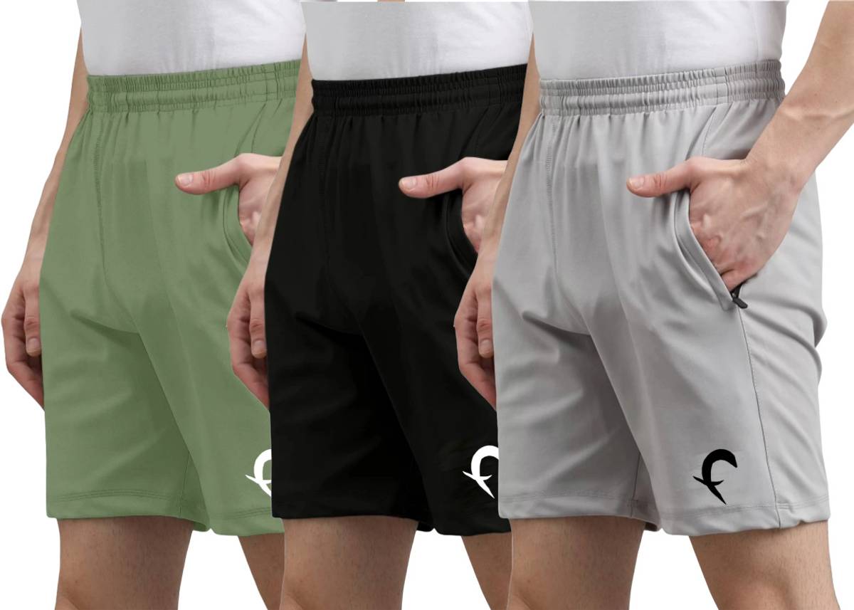 Flicfol Pack of 3 Solid Men Multicolor Sports Shorts, Basic Shorts, Regular Shorts