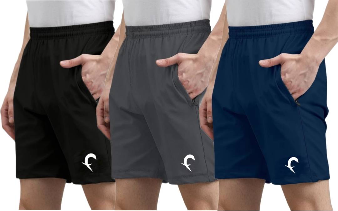 Flicfol Pack of 3 Solid Men Multicolor Sports Shorts, Basic Shorts, Regular Shorts