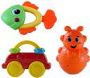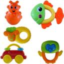 Flick in presents 5 Pcs Rattle Comes In Multicolor. It Makes A Pleasant And Rattling Sound On Shaking Which Really Excite The Young Ones. They will love to explore the different colours, sounds and touch while holding this rattle. This Toy Aids The Child To Learn About Sound And He Or She Tries To Concentrate On The Type Of Sound Produced. Apart From Entertainment It Is Also A Learning Device Which Increases The Concentration Level Of The New Borns. . This rattle can also be a very interesting gift for babies.