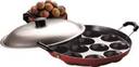 • @Eco Non-Stick 12 Cavity Appam Patra/Paddu Maker Ponganal Maker Hammer-Tone Coating Paniarakkal with Lid (Aluminium, Non-stick)