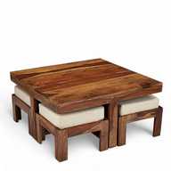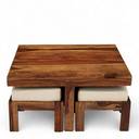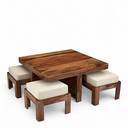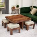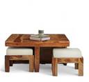 Flipkart Perfect Homes Blane Sheesham ( Rosewood ) Accent Center Table Set with 4 Stools Solid Wood Coffee Table (Finish Color - NATURAL TEAK FINISH, Pre-assembled)