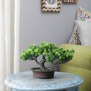 Bring home this real looking artificial bonsai tree with 4 heads and green pine leaves. The tree has a large green canopy. It is 21 cms in height and 30 cms in width and can be put on your desk, dining table or any side table easily. Long lasting and easy to clean. A great gift for house decoration. It comes with oval brown pot.