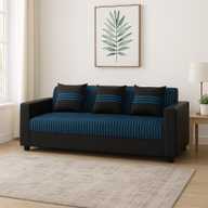 Flipkart Perfect Homes New Crete Striped Design Fabric 3 Seater Sofa (Finish Color - Blue & Black, DIY(Do-It-Yourself))