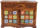 Flipkart Perfect Homes Sheesham Solid Wood Solid Wood Free Standing Sideboard (Finish Color - Teak Finish & Multicolor, Door Type- Hinged, Pre-assembled)