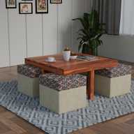Flipkart Perfect Homes Solid Sheesham Wood Coffee Table With 4 Stool | Solid Wood Coffee Table (Finish Color - Natural Teak, Pre-assembled)