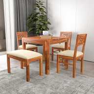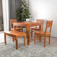 Bring home the Sheesham Wood Dining Set with Bench and Chairs—a perfect fusion of strength, style, and space-conscious design.